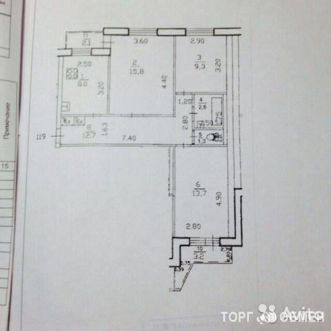 3-к квартира, 64 м² 6 эт.