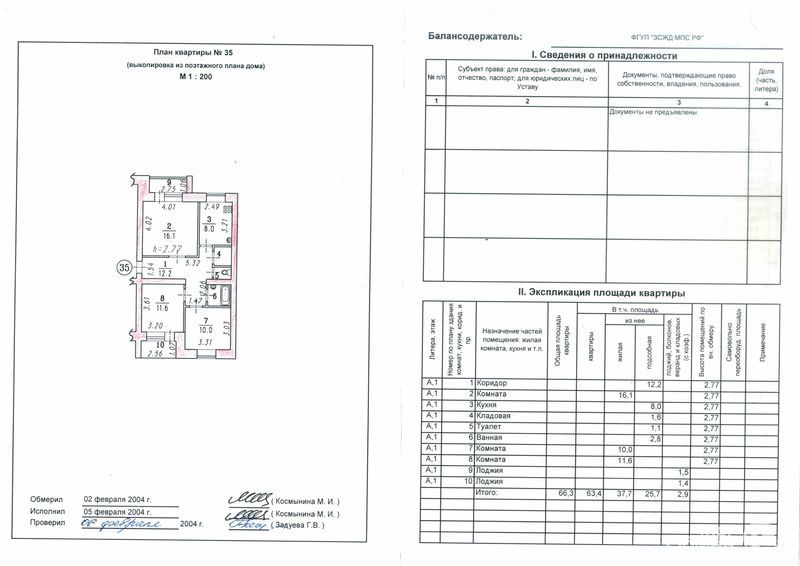 площадь-66.3 кв.м., жилая площадь- 63.4