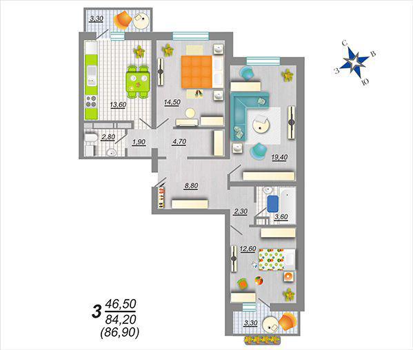 3-х комнатная квартира