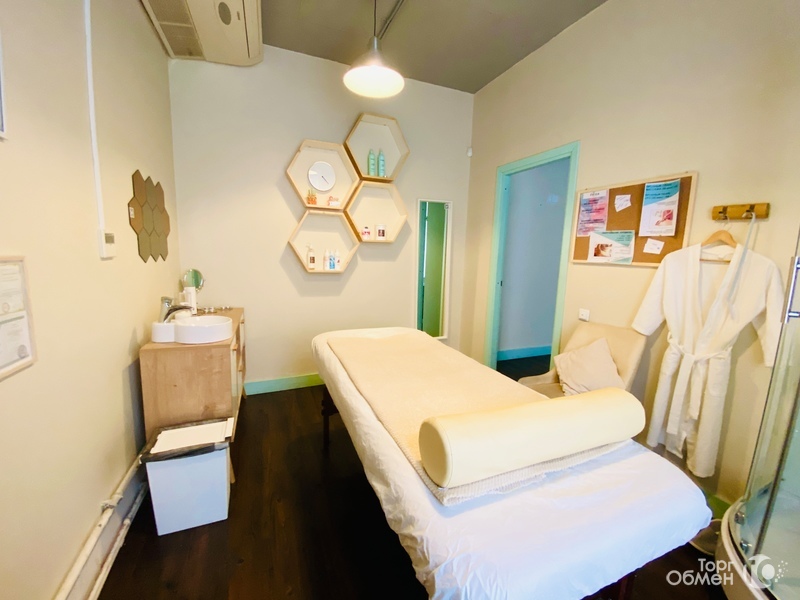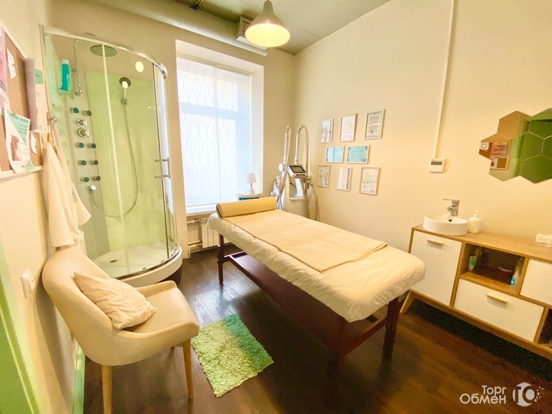 - КАБИНЕТ с местом для хранения, массажной кушеткой, раковиной и душевой кабинкой.