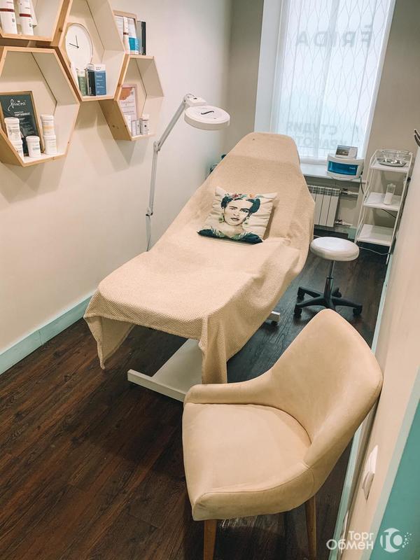 - КАБИНЕТ с местом для хранения, косметологической кушеткой, тележкой, лампой-лупой и раковиной.