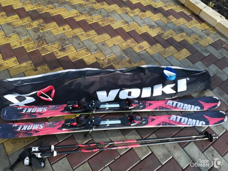 Продам горные лыжи Атомик с креплениями и палками. Имеются горнолыжные ботинки 43 размера.