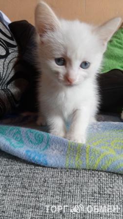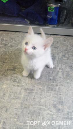 Продаётся кошечка метис от ангорской кошки. Цвет белый слегка рыжие обводки на ушках и хвосте, слегка пушистая. Котёнку 1,5 мес. Кушает как сухой так и мяско в пакетиках. Контактная, тянется к людям.