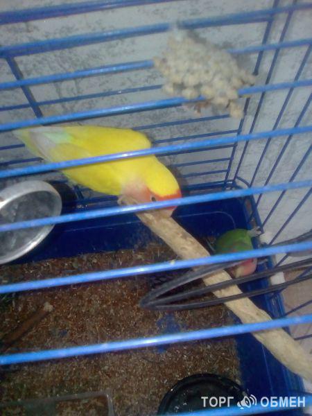 Пара попугаев, с клеткой
