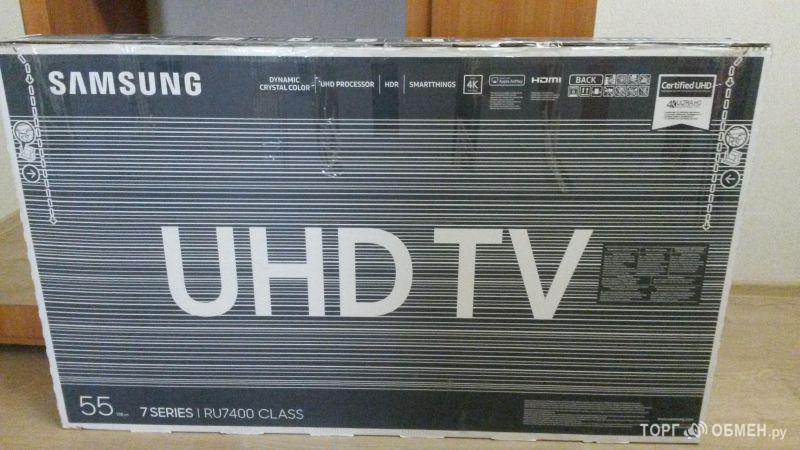 Новый телевизор куплен месяц назад. Трещина в углу экрана. В упаковке, гарантийный талон, пульт с голосовым набором.
