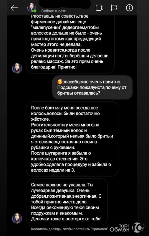 Добрый день. Буду рада познакомиться лично, меня зовут Юлия.Расскажу вам немного о том,как проходит процедура "шугаринг".Я приеду к вам на дом,в удобное для вас время.Далее, вам необходимо подготовиться.В первую очередь прошу,ничего не бойтесь! На протяжении 4 лет я депилирую девочек, каждая девушка после процедуры говорит о том,что зря боялась и долго решалась.Во вторую очередь, необходимо подготовить нужную длину волос,это 4-5мм,можно длиньше,короче не нужно.Если длина будет 4-5мм - процедура пройдет достаточно быстро,особого дискомфорта вы не ощутите.Отращивают необходимую длину девочки по-разному,кому то необходимо 4-7 дней,кому то 2 недельки. Я на первую процедуру готовила подходящую длину всего 4 дня.Если сомневаетесь,всегда можете написать мне на WhatsApp и я подскажу вам.Далее я приступаю к работе,удаление волос происходит профессиональной Сахарной пастой.На зону бикини у меня уйдёт минут 15.На ножки, ручки,подмышечки+бикини примерно час.После процедуры я обработаю кожу профессиональным,восстанавливающим,питательным,охлаждающим кремом.Волоски начнут отрастать недельки через 2-3.Хочу обратить ваше внимание на фото,волоски уже не будут прежними (колючими и жёсткими), они станут мягче,светлее и их количество заметно уменьшится. Сразу после того,как я уеду - я попрошу вас перед сном нанести на все зоны, с которых мы удаляли волоски - увлажняющий,питательный крем.И все. Далее вы наслаждаетесь мягенькой, нежной кожей,как у младенца.И примерно через 3-4 недельки мы с вами снова встретимся))ПРАЙС:Бикини глубокое - 900₽Ножки до колена - 500₽Ножки полностью - 1000₽Подмышки - 200₽Ручки ло локтя - 350₽Ручки полностью - 500₽Мои хорошие,до конца месяца для вас действует АКЦИЯ