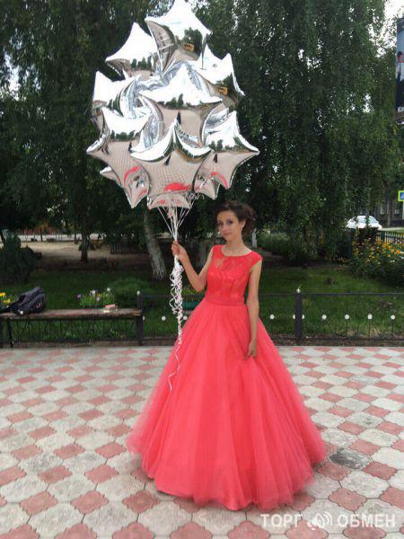 выпускное платье ,на корсете ,кораллового цвета ,пышное в пол .Надевала 1 раз